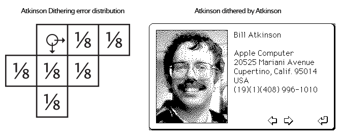 곱해지는 pixel을 모두 더하면 1이된다. 하지만 1이 되지 않는 알고리즘도 있다. 바로 Atkinson Dithering이다.