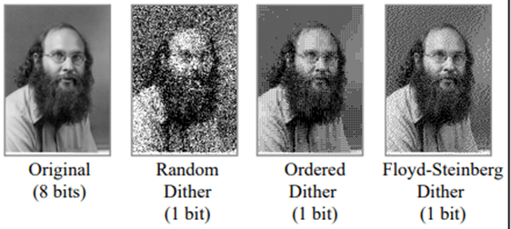 Bit Depth가 제한적인 경우, 실제 색을 못 보여줄 때 시각적으로 유사한 느낌을 전달하기 위해 많이 사용된다.