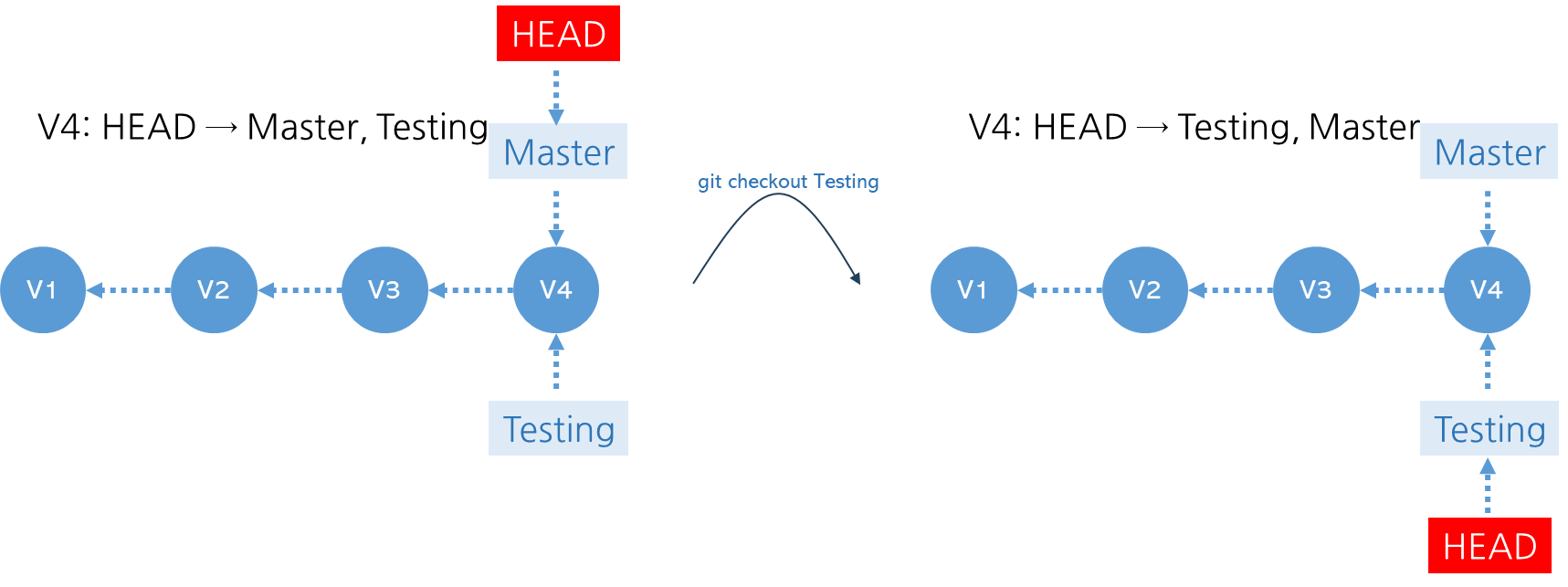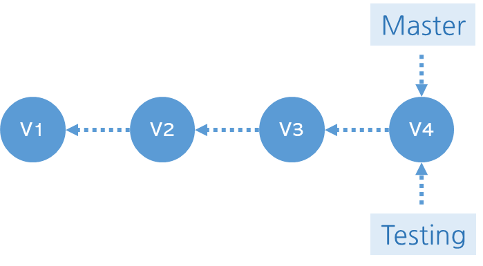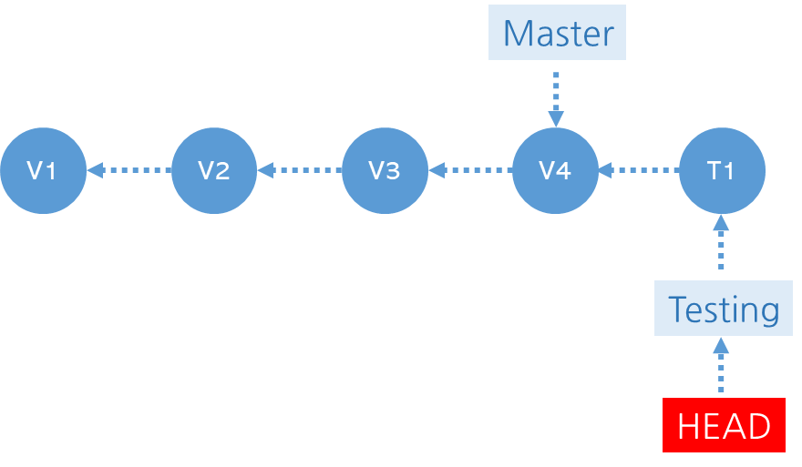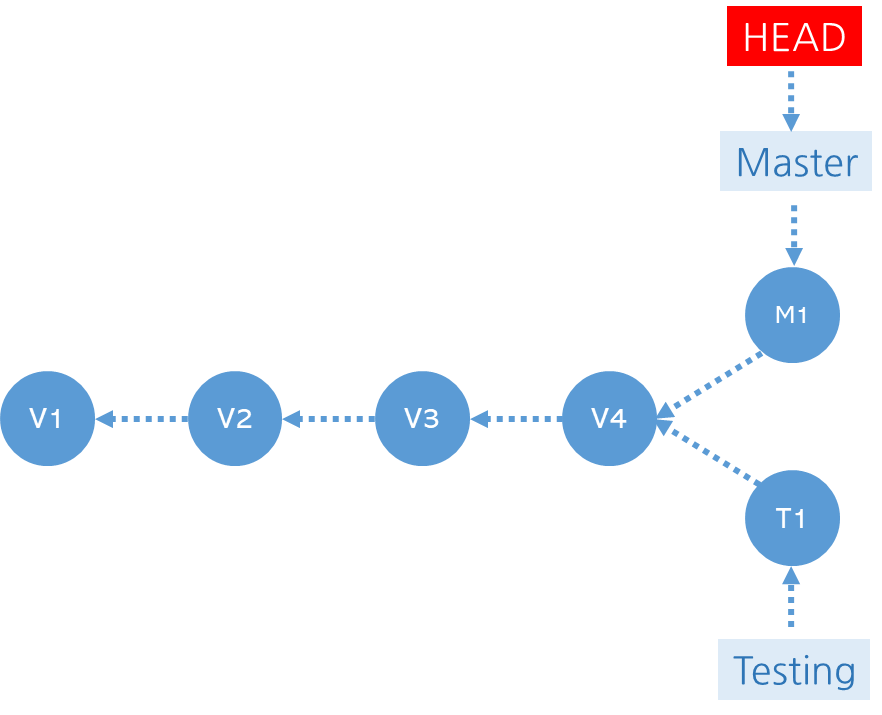 ③ 새로 만든 Branch(Testing)도 자동으로 마지막 Commit을 가리킨다.