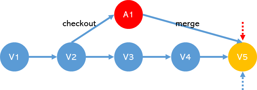⑤ git merge test_branch: test_branch를 master branch에 merge