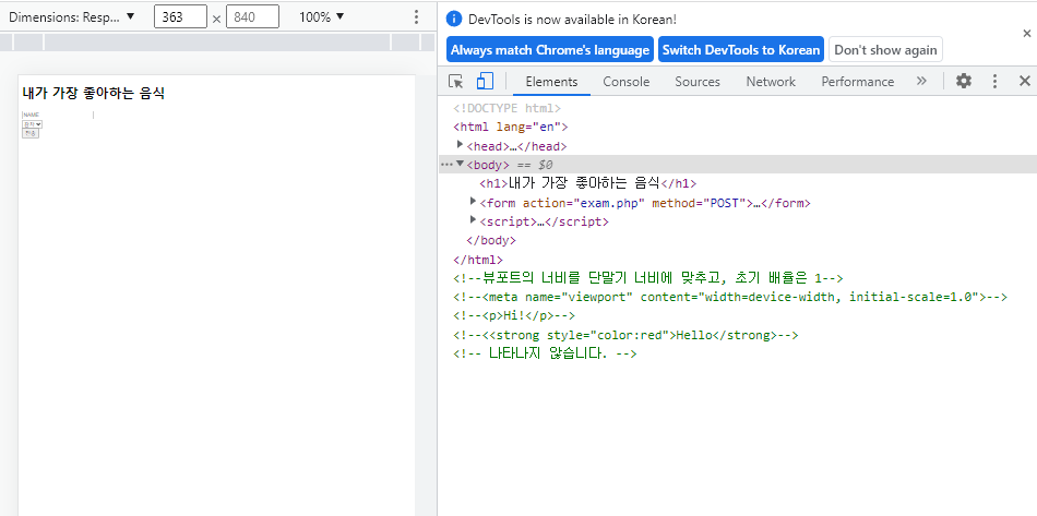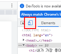 개발자 도구(F12)에서 Toggle Device Toolbar(또는 반응현 디자인 모드)를 누르면 확인할 수 있다.