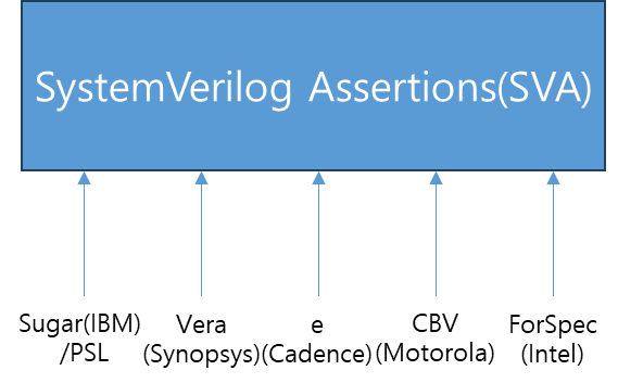 - 이러한 문제를 해결하기 위해 SystemVerilog 표준 위원회는 언어에 고유한 하위 집합을 추가하여 이를 SystemVerilog Assertions(SVA)라고 명명했다.